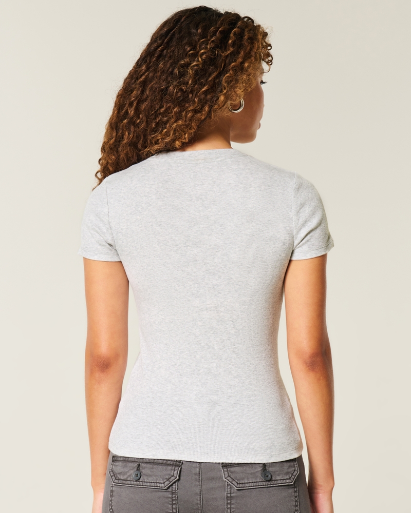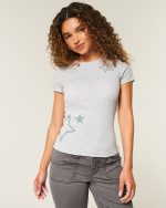 A super soft Y2K-inspired baby tee designed with a slightly shrunken silhouette, featuring Angelic graphic embroidery. Short sleeves, crew neckline, cozy ribbed fabric. Slim Fit. Imported.