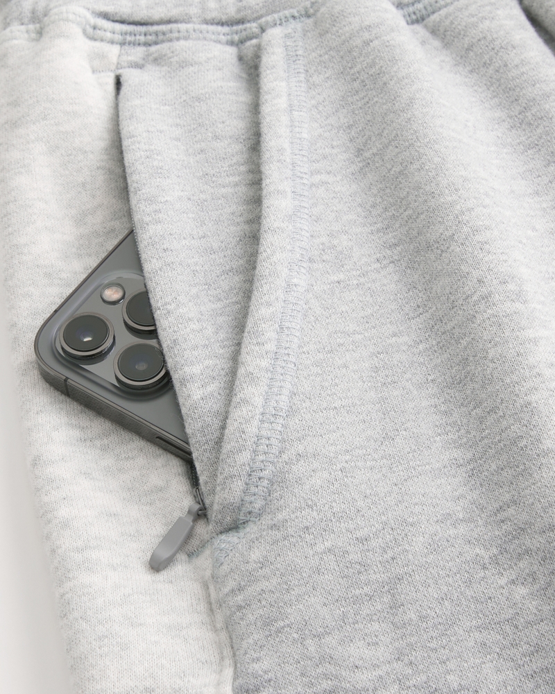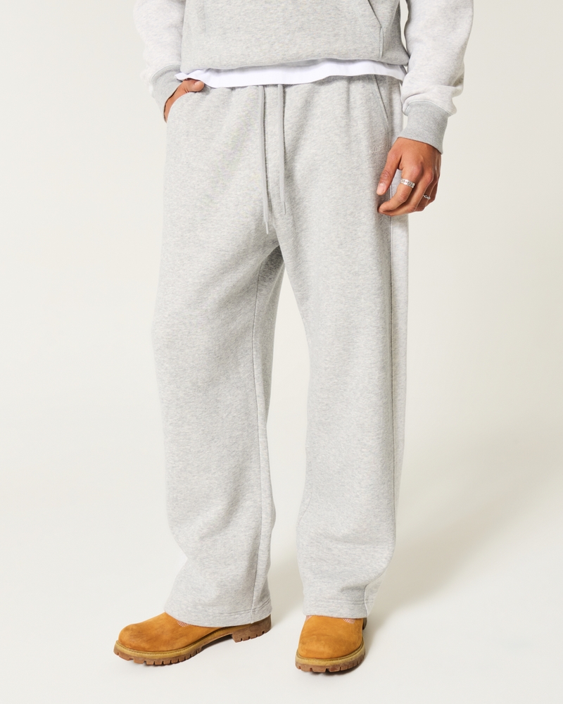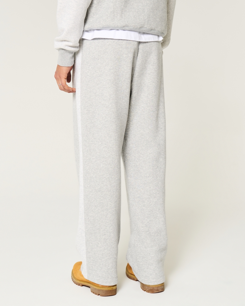 Super soft fleece sweatpants featuring varsity-inspired stripes along the sides and a baggy leg. Drawstring waist, logo detail, pockets, right zipper pocket. Imported.