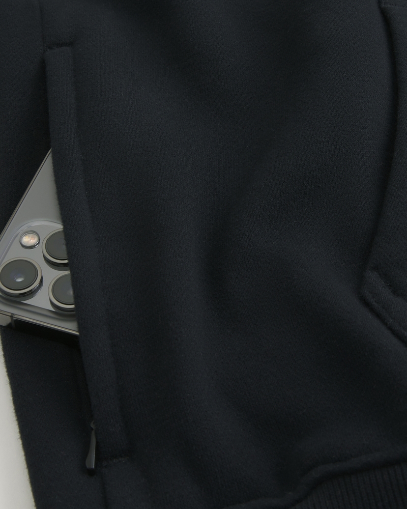 A super soft fleece hoodie with a double fleece-lined hood, hidden zipper pockets and an embroidered left sleeve logo detail. Washed look. Boxy Fit. Imported.