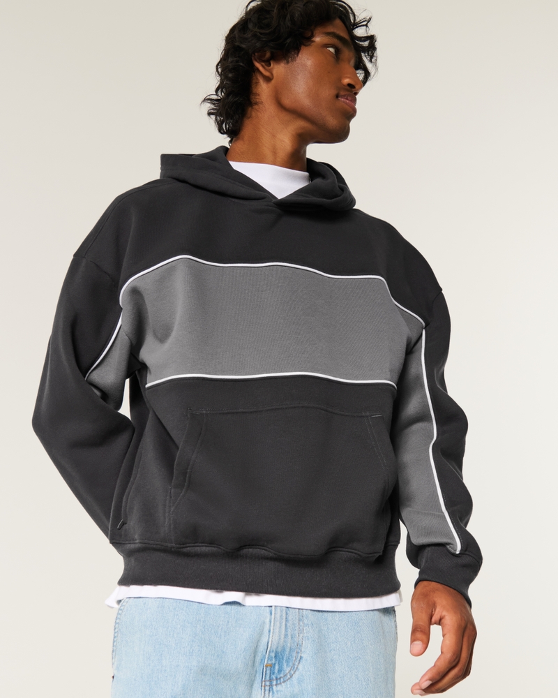 A super soft fleece hoodie with a double fleece-lined hood, hidden zipper pockets and an embroidered left sleeve logo detail. Washed look. Boxy Fit. Imported.