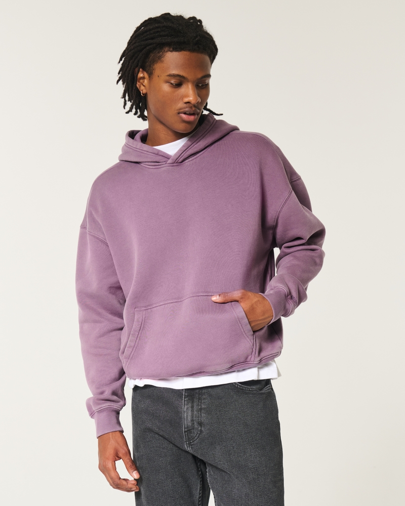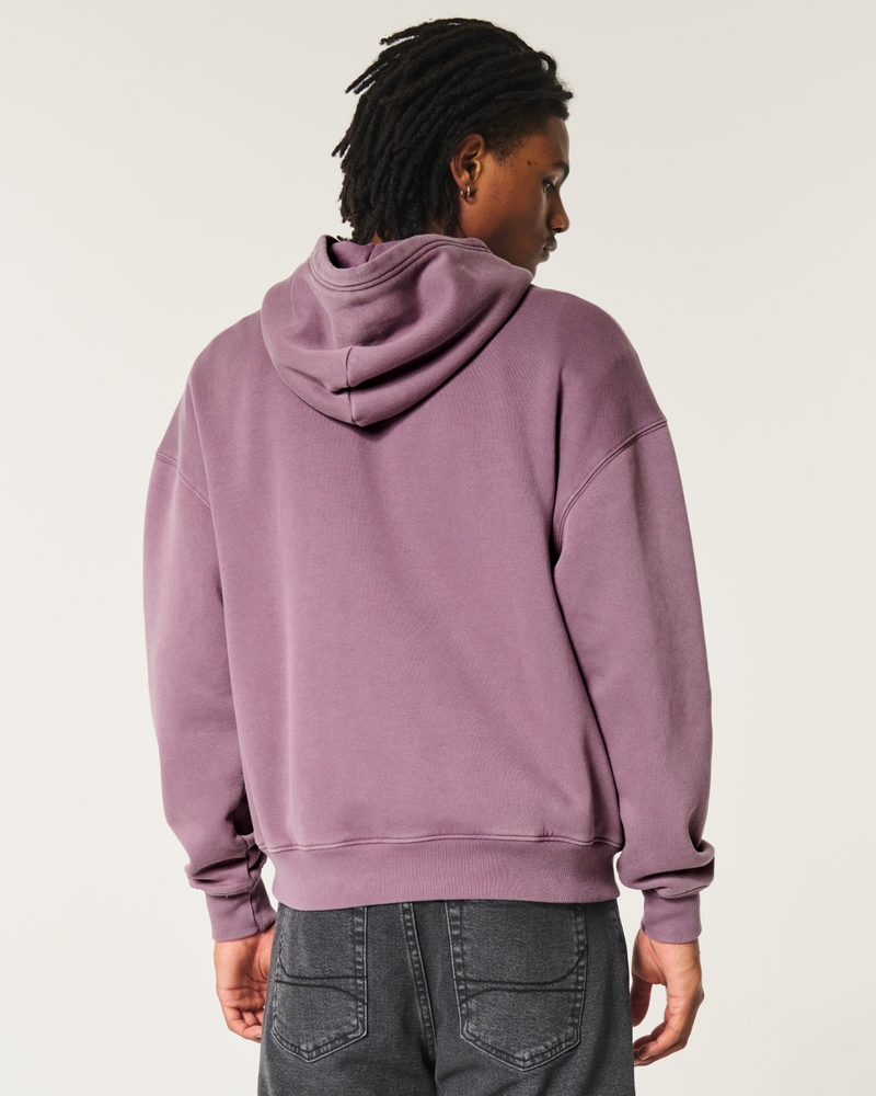 A super soft fleece hoodie with a double fleece-lined hood, hidden zipper pockets and an embroidered left sleeve logo detail. Washed look. Boxy Fit. Imported.