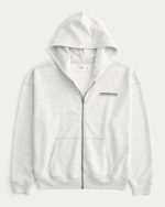 Boxy Logo Zip-Up Hoodie – light heather gray