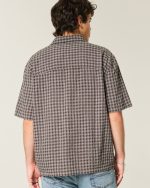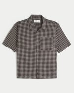 Boxy Short-Sleeve Pocket Shirt – brown plaid