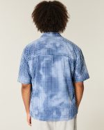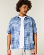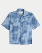 Boxy Short-Sleeve Pocket Shirt – washed blue plaid