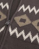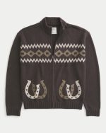 Boxy Zip-Up Western Graphic Sweater – dark brown pattern
