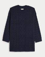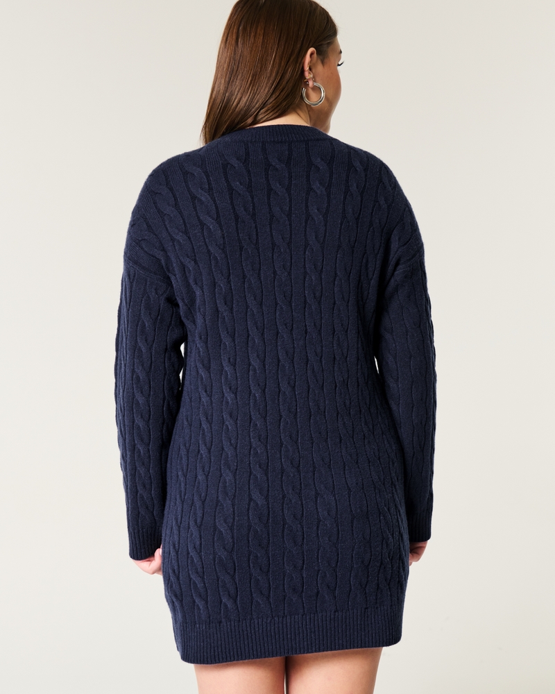 A cozy and super soft sweater dress with classic cable-knit patterns. Crew neckline, long sleeves, ribbed trims. Imported.