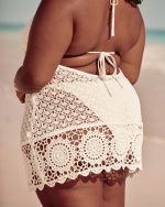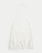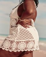 This cute and comfy swim cover up dress is made with super soft crochet-style fabric with pretty all-over patterns. Halter straps. Imported.