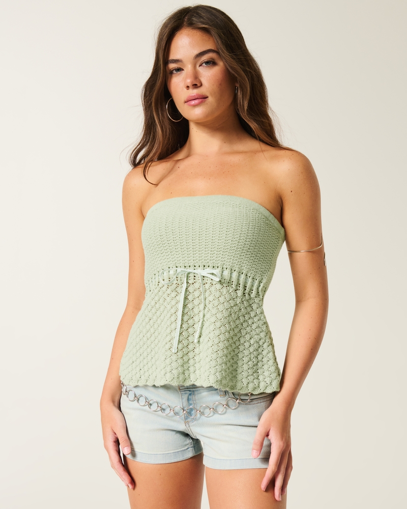 Crochet-Style Strapless Sweater Tube Top – pistachio
