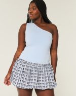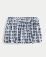 Denim Bubble Mini Skirt – powder blue plaid