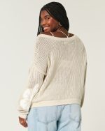 Easy Stitchy Graphic Slouchy Crew Sweater – beige