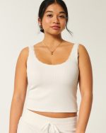 Gilly Hicks Cozy Waffle Lace Trim Tank – cloud white