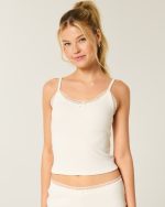 A super soft and comfy cami in waffle fabric, featuring pretty lace trim at the neckline. Imported.