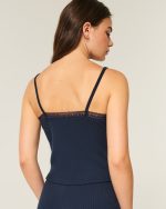 A super soft and comfy cami in waffle fabric, featuring pretty lace trim at the neckline. Imported.