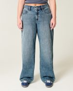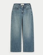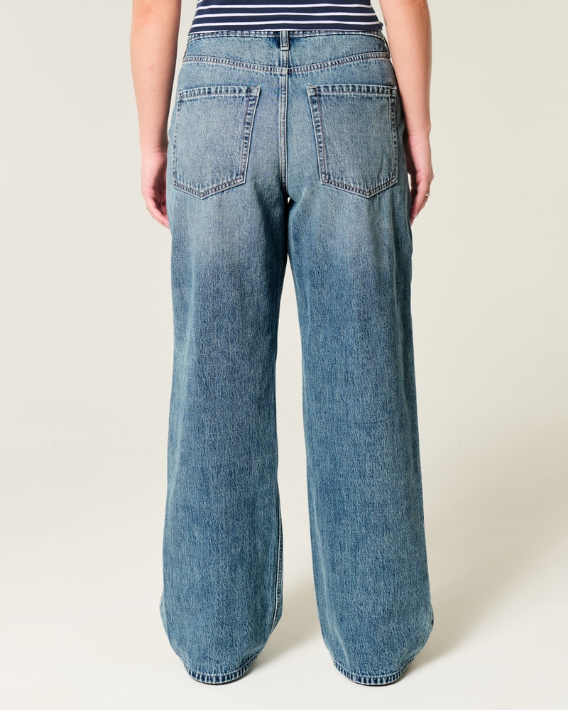 Comfortable denim jeans designed with a flattering high-rise waist and baggy leg. Washed black with fading and whiskering. Imported.
