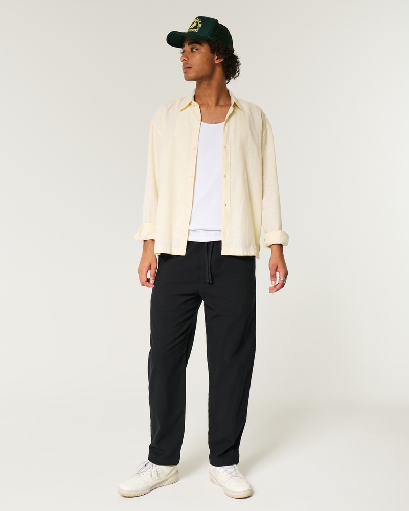 Comfortable pants in a soft linen blend, designed with a pull-on drawstring waist and loose leg. Pockets. Imported.