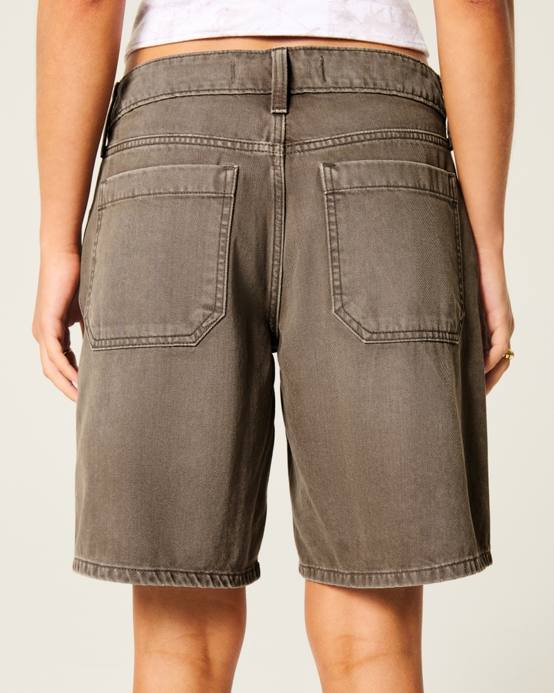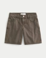 Low-Rise Dark Rinse Wash Baggy Jort – light brown