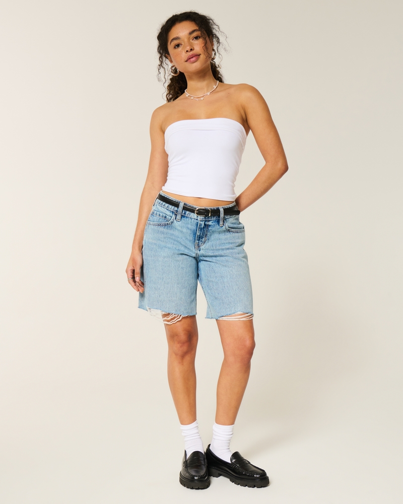 Low-Rise Dark Rinse Wash Baggy Jort – medium wash