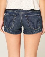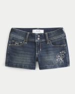 Low-Rise Dark Wash Embroidered Denim Shortie Shorts – dark