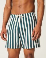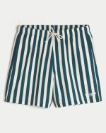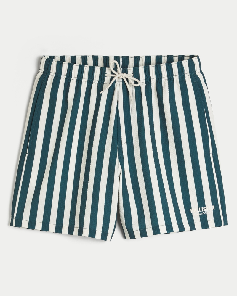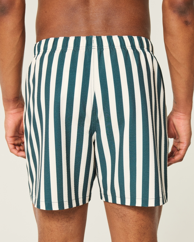 Mid-Thigh Seersucker Volley Swim Trunks – dark green stripe