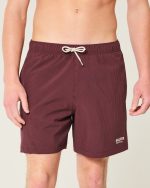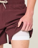 Mid-Thigh Seersucker Volley Swim Trunks – maroon stripe