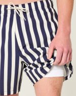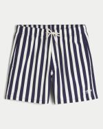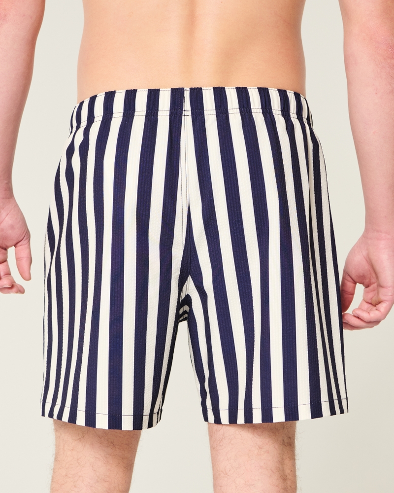 Mid-Thigh Seersucker Volley Swim Trunks – navy stripe