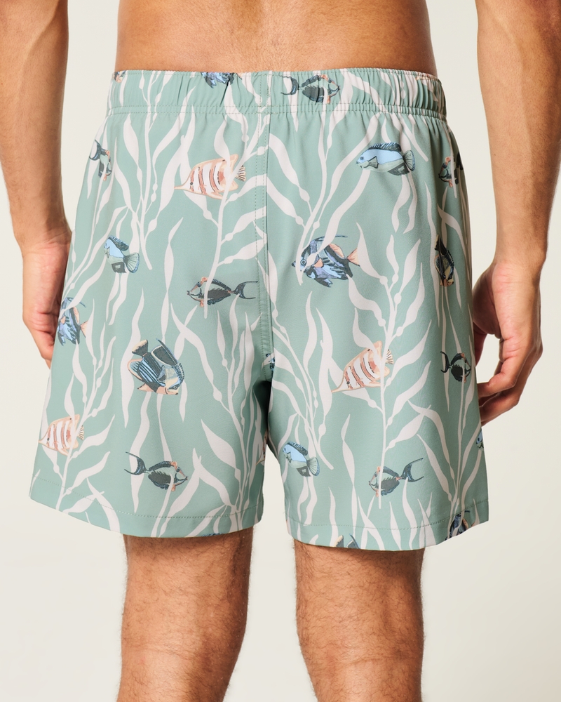 Shorter-length swim trunks that hit mid-thigh. Featuring comfortable 4-way stretch swim fabric and a 6" inseam. Pockets. Imported. Imported.