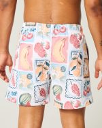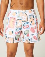 Mid-Thigh Volley Swim Trunks – white print
