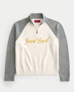 Relaxed Lunar New Year Graphic Quarter-Zip Sweater – gray and cream