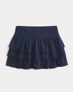 This cute mini skort is designed with a mid-rise waist and features hidden knit shorts with a side phone pocket. Soft and stretchy knit fabric, pretty ruffled tiers. Imported.