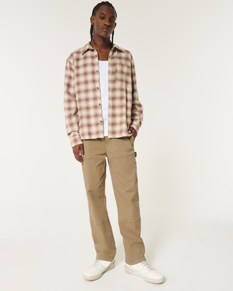 Classic, comfortable twill pants designed with a straight leg and workwear-inspired seam detailing. Pull-on drawstring waist, right zipper pocket, hammer loop. Imported.