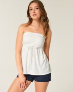 Strapless Tie Waist Babydoll Top